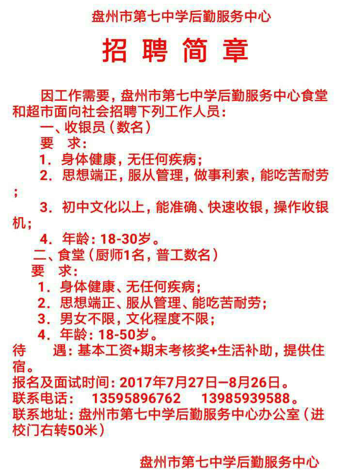 盤州市第七中學后勤服務中心招聘簡章